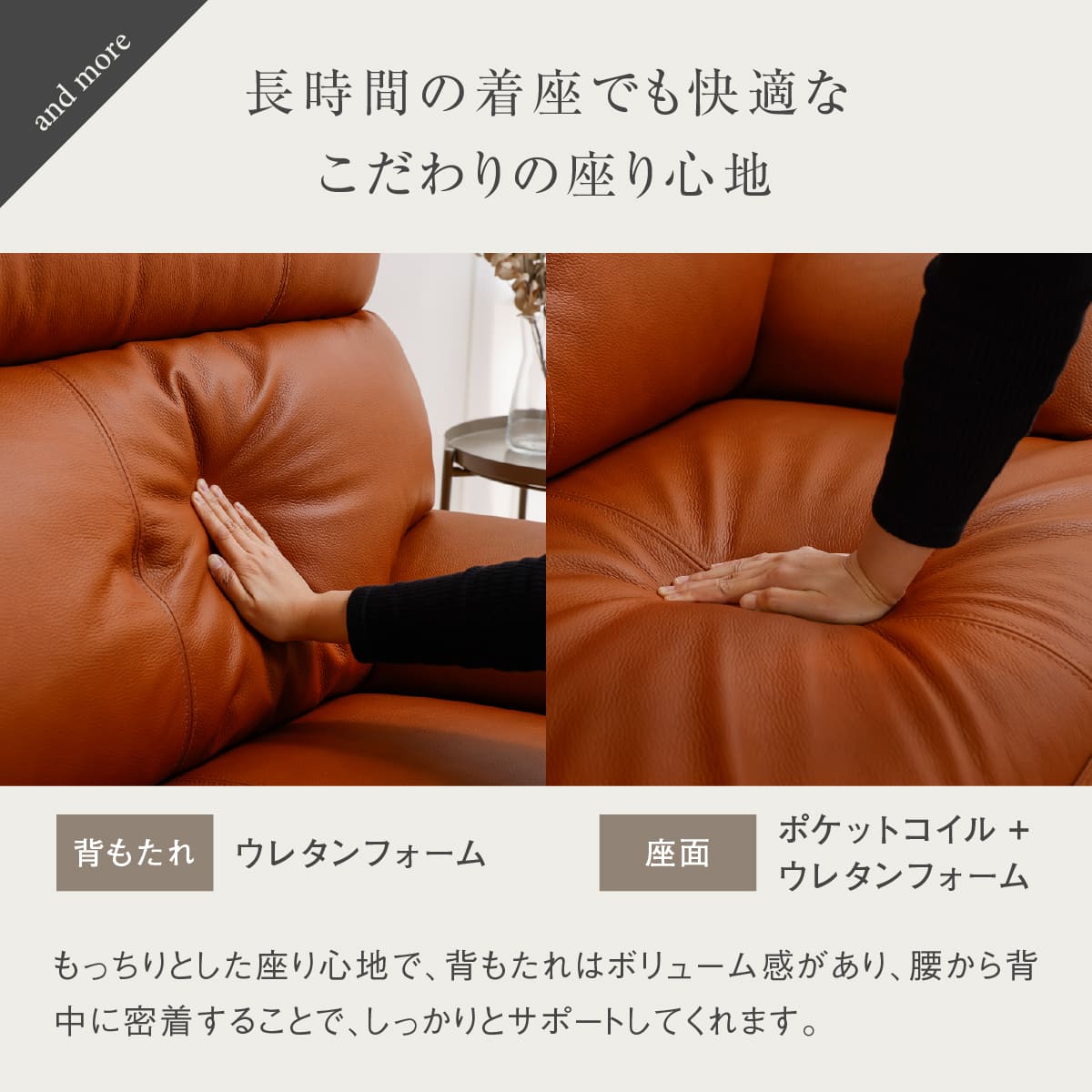 商品情報 しっとりした質感が特徴的な本革を使用したソファ