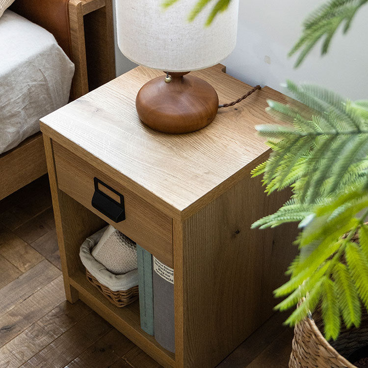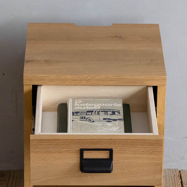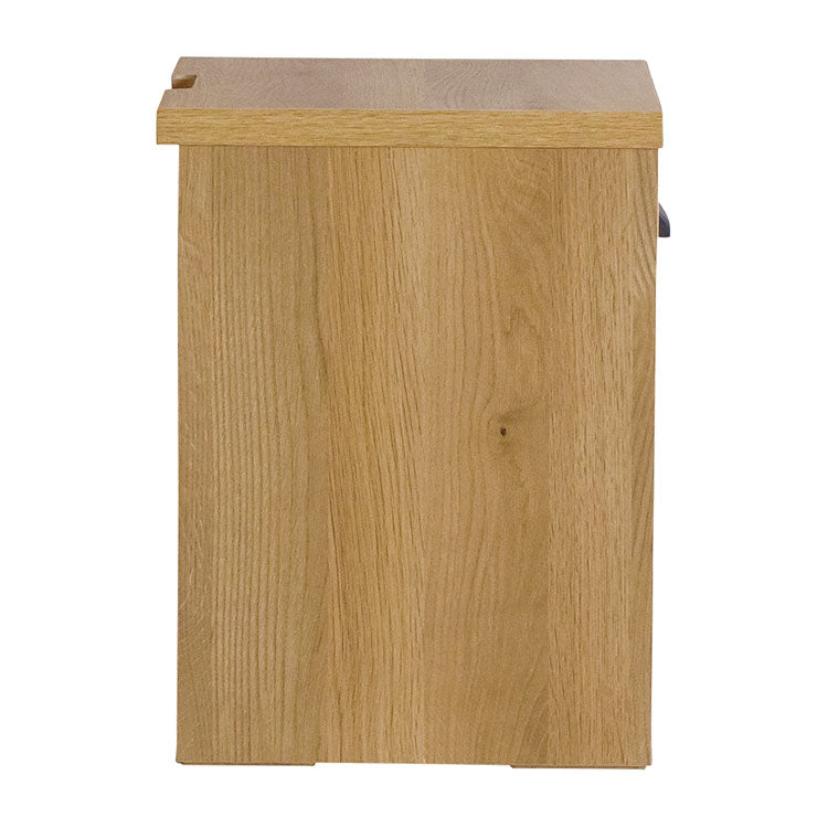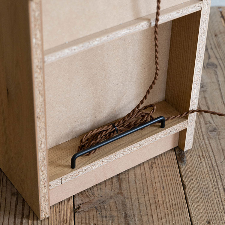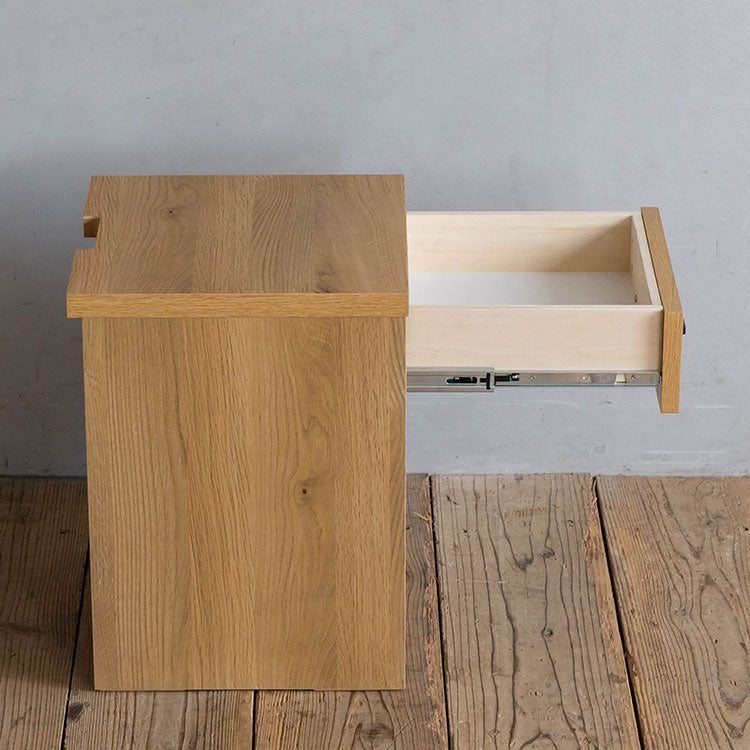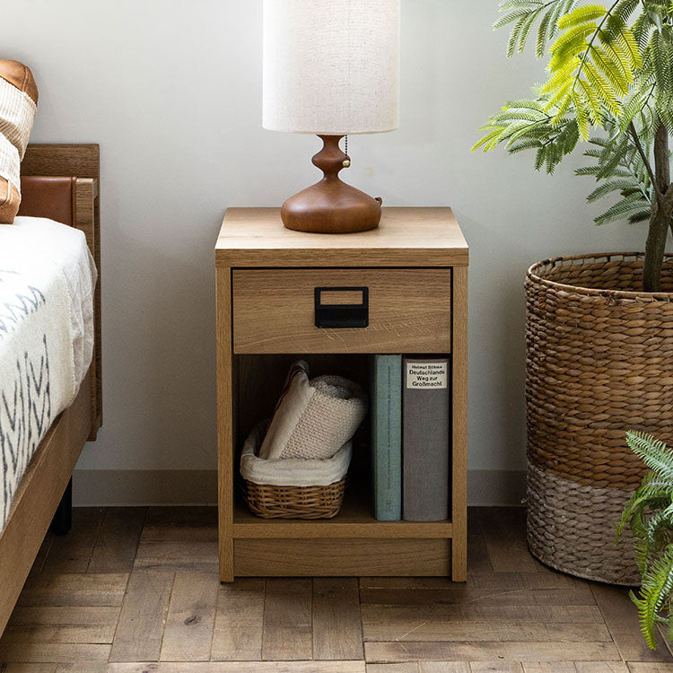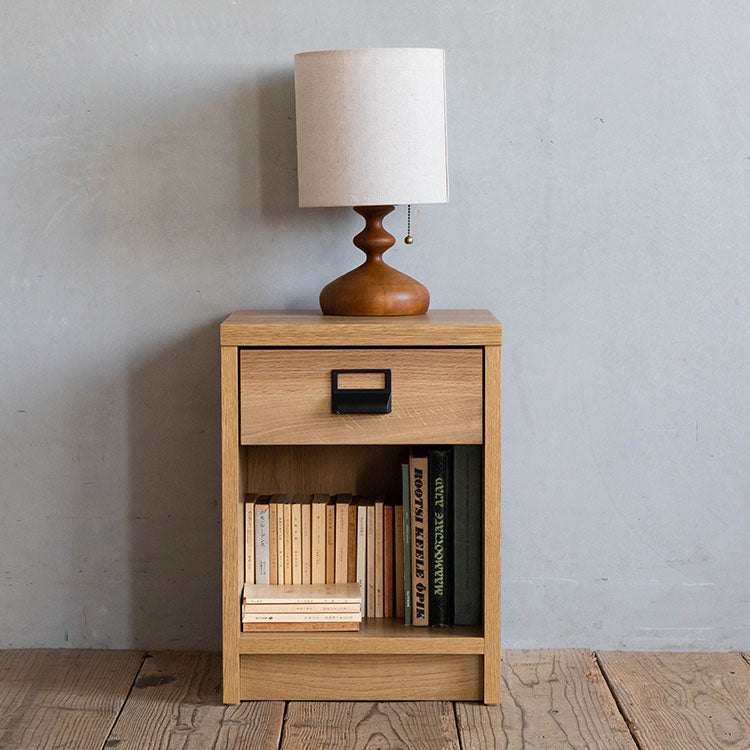 商品情報 オークを基調としたナチュラルな木の風合いを、黒のスチールパーツで引き締めたスタイリッシュさと温かみの感じられるシンプルなナイトチェストです。背面のコード捌きにもこだわり、周辺配線をすっきりみせることができます。