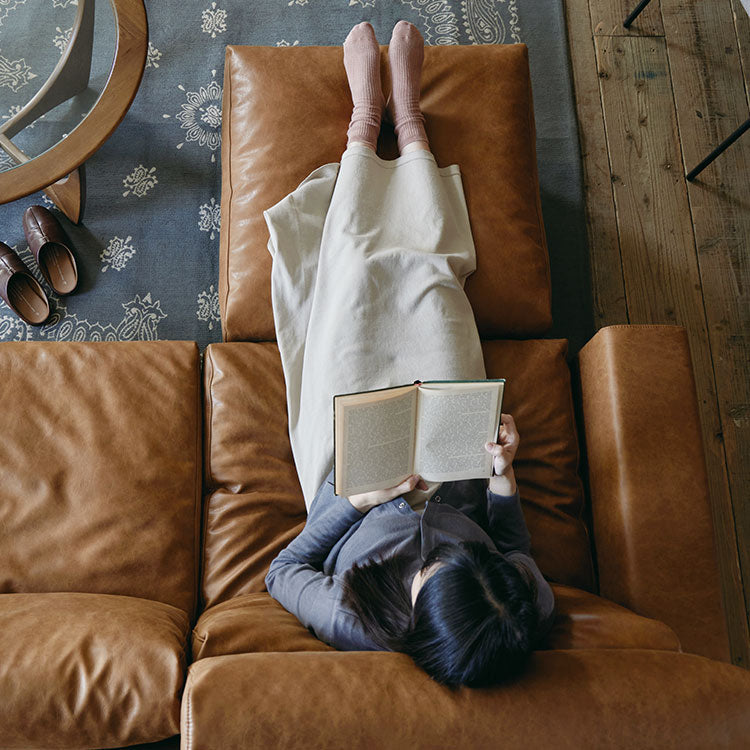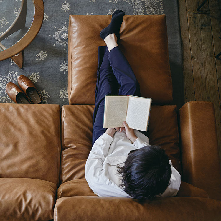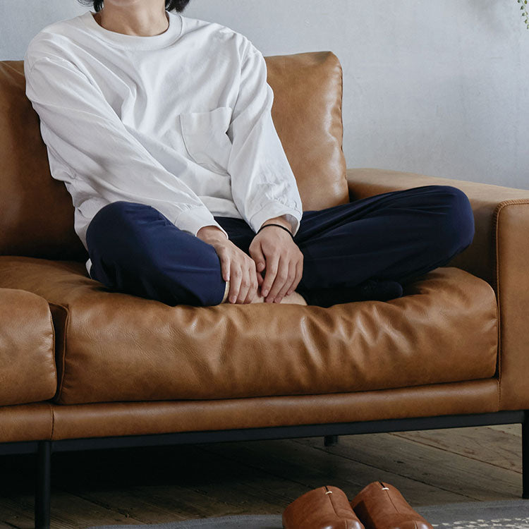 商品情報 贅沢にたっぷりとフェザーを使い、身体に馴染むようにくったりと沈み込む座り心地が特徴のソファ。 ヴィンテージソファのルーズな張り感をイメージした座面に、すっきりとしたブラックスチール脚のコントラストをきかせました。 ゆったりとした奥行きと、幅広で低めの肘置きがくつろぎの時間を演出します。
