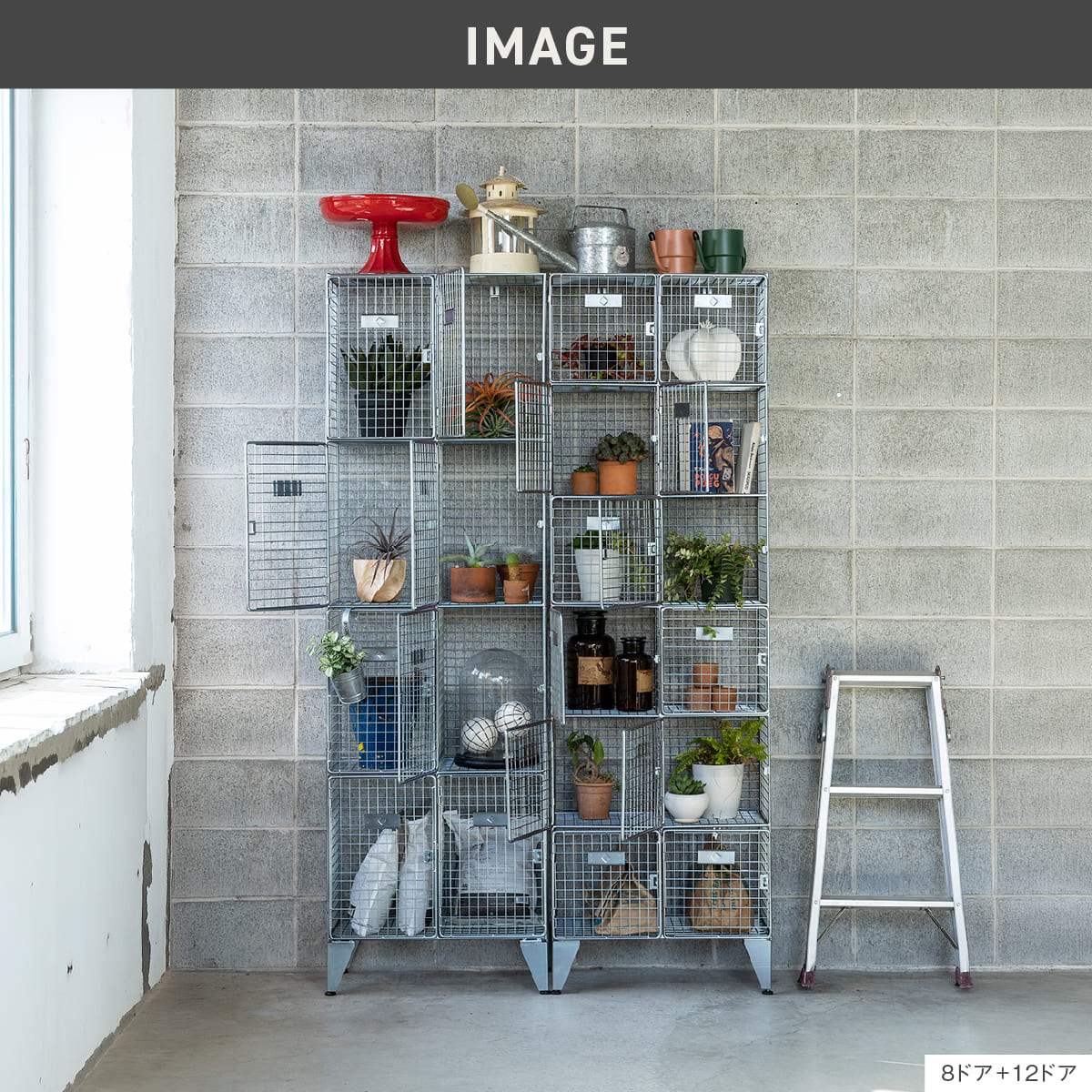 商品情報 イギリスの学校や仕事現場などで使われているワイヤーメッシュのロッカーキャ ビネット。全方位スケルトン仕様で存在感のあるデザインです。靴、アウトドア 用品の収納、観葉植物のディスプレイなどアイディア次第で様々な用途で使 用可能。店舗什器としてもおすすめです。