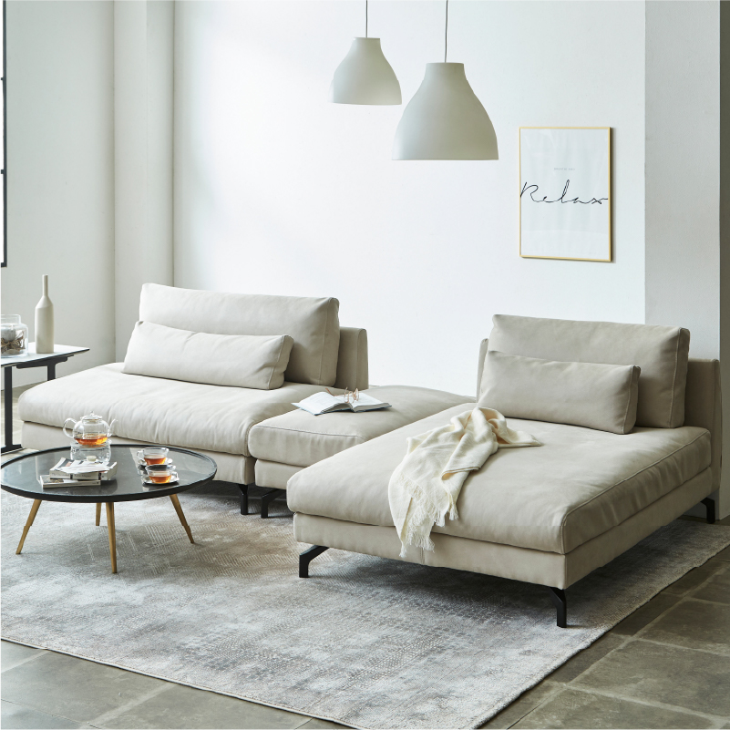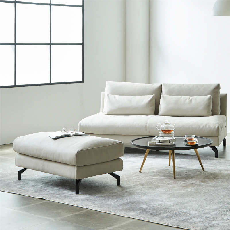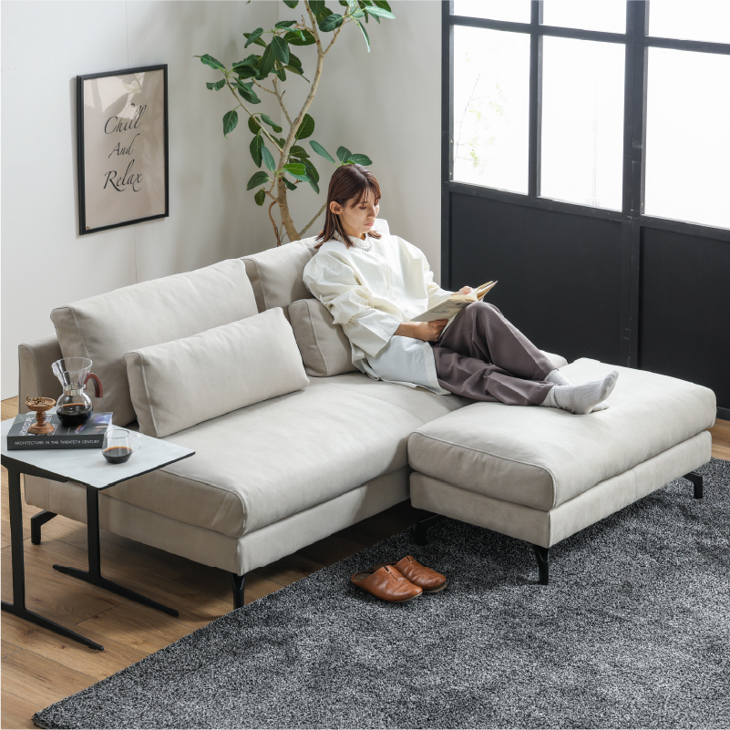 本体構造 座面内材:ソフトフェザー+高密度ウレタンフォーム 座面下構造:ウェービングベルト 背面内材:フェザー/ウレタンフォーム