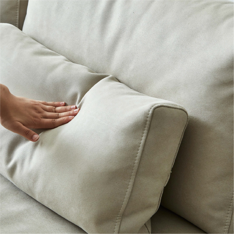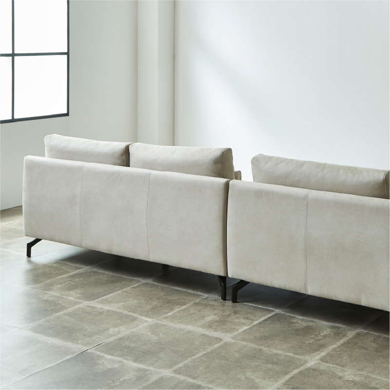 背もたれにはスモールフェザー、座面には高密度ウレタンフォームを使用。 ※画像は1.5人掛け