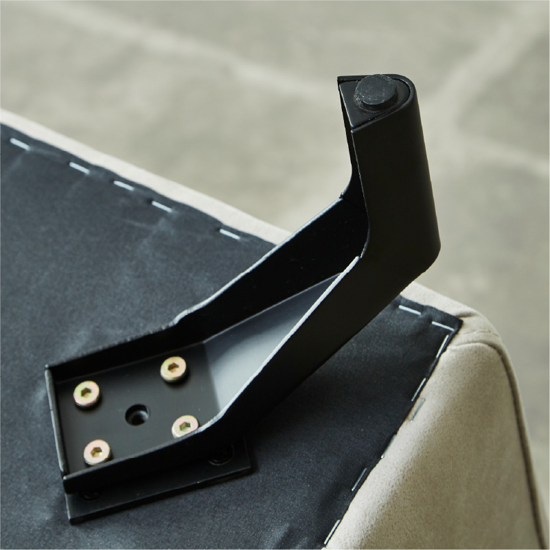 脚裏には傷防止のための樹脂パーツ付き。滑り止め効果もあり、機能的です。