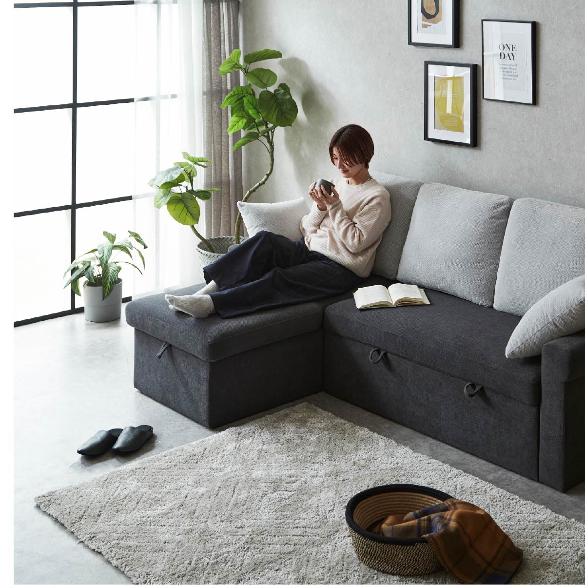 商品情報 カウチ部分の座面下には収納がついており、2P部分を引き出すことでベッドにもなる2WAYソファです。ヘッドレストとハンドクッション2つ付きなのでお好みの形でおくつろぎいただけます。左右の組み替えが可能です。