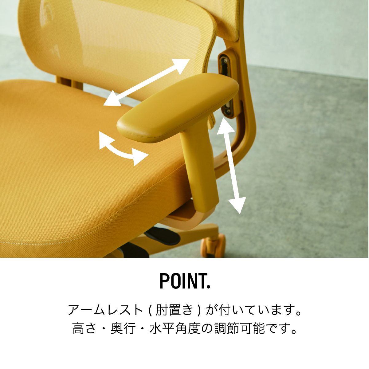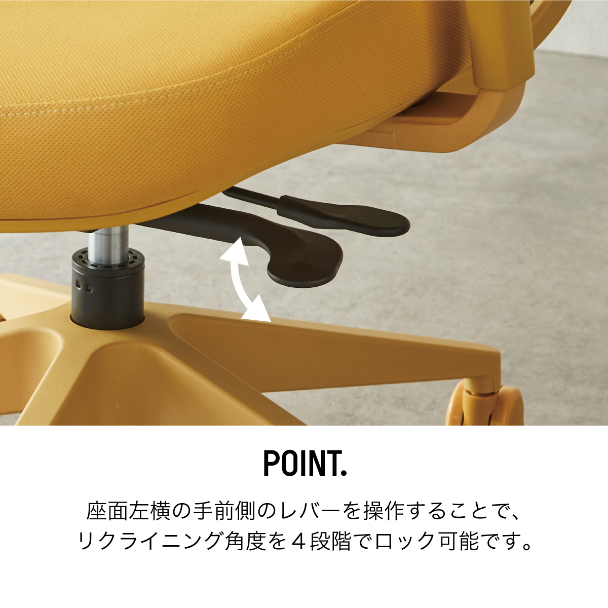 商品情報 ・シンクロリクライニング ・4段階リクライニングロック ・ランバーサポートあり(高さ調節可) ・3Dアームレスト ・PUキャスター