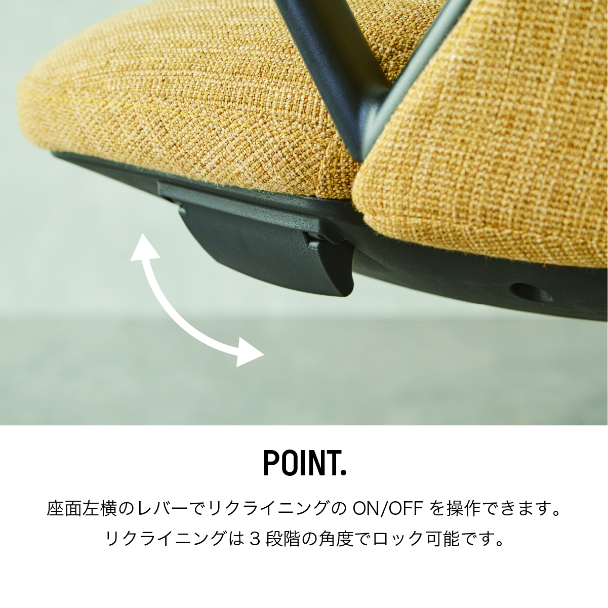 商品情報 ・シンクロリクライニング ・3段階リクライニングロック ・固定型アームレスト ・PUキャスター装備