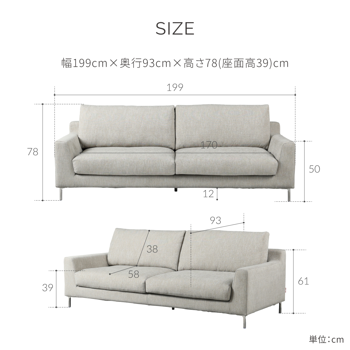 デイラート 3人掛けソファ 幅199cm A41 カスタード(ファブリックAランク) 商品コード 426235