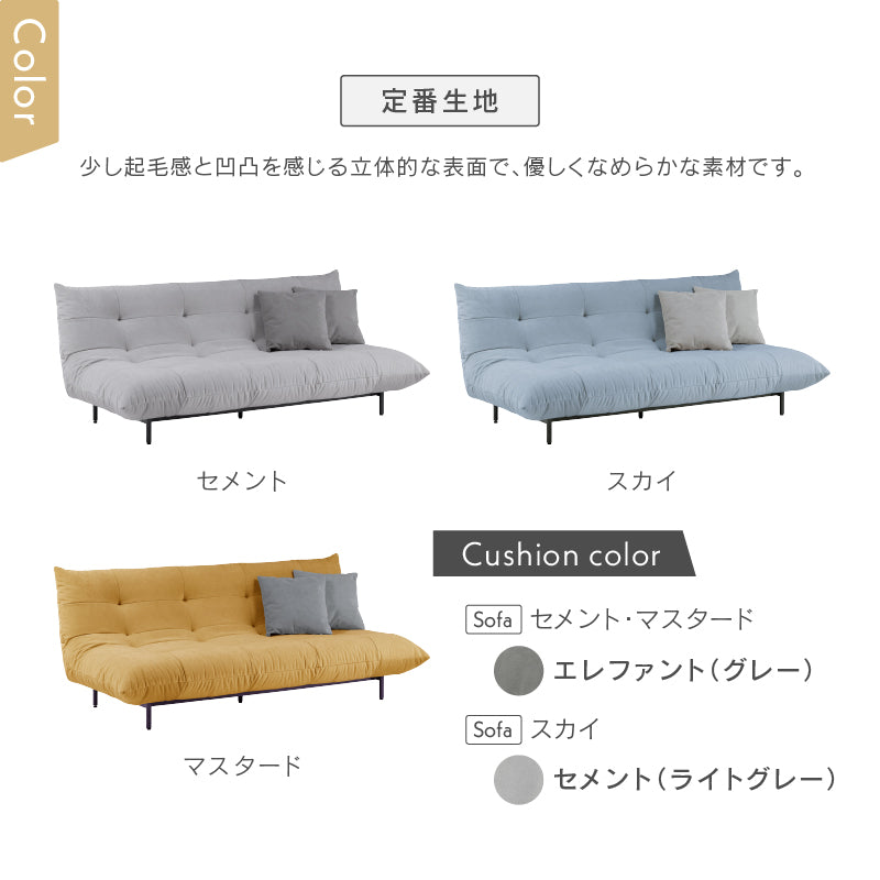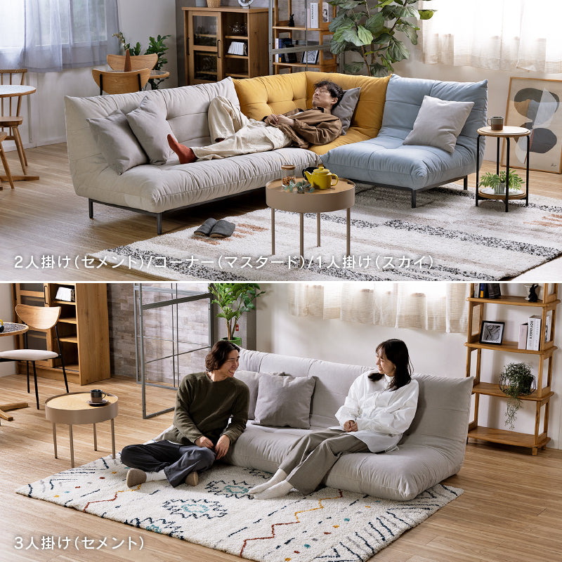 商品情報 優しいカラーのファブリックと流線型デザインが特徴のソファ。3色、6サイズ展開で、お部屋にぴったりの一台が見つかります。脚は11㎝でお掃除ロボットもスムーズに通過。取り外しもでき、ローソファとしても使える自由なスタイルが楽しめます。