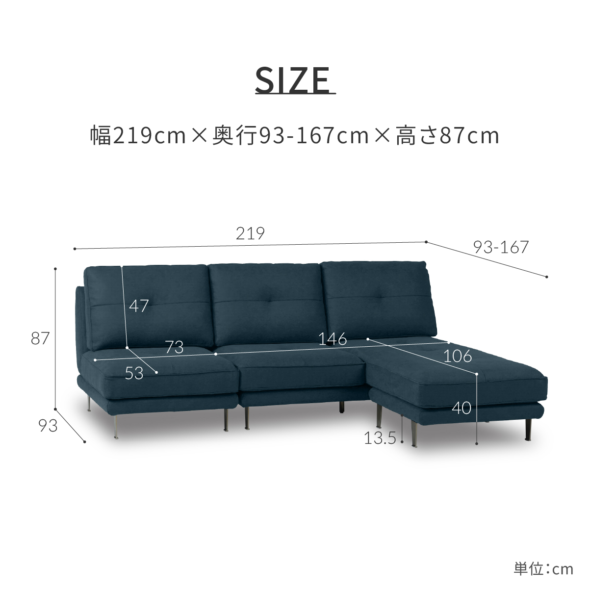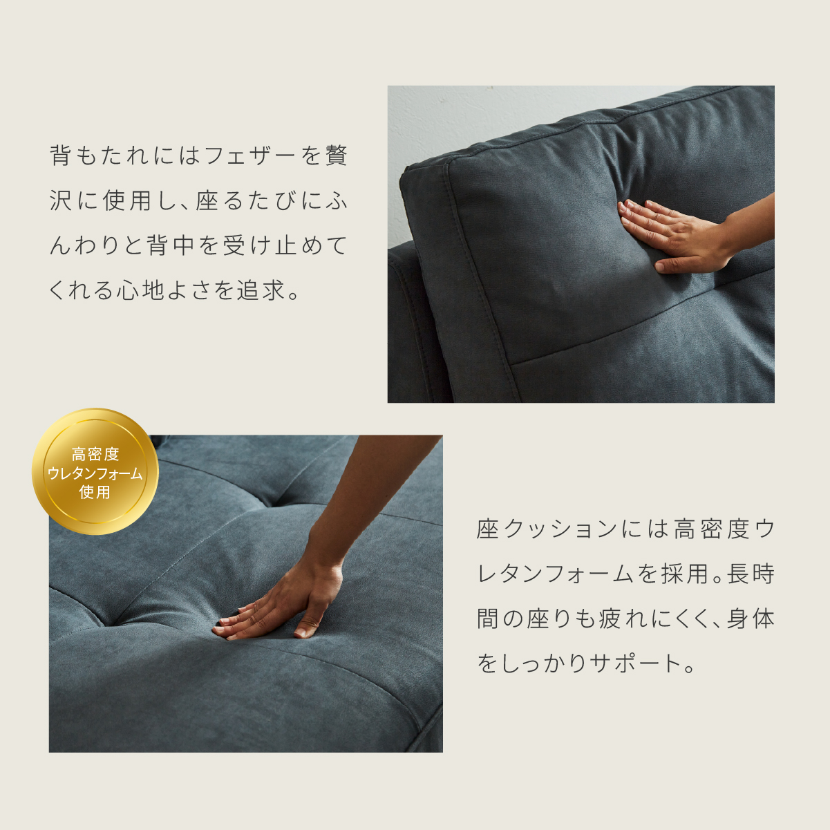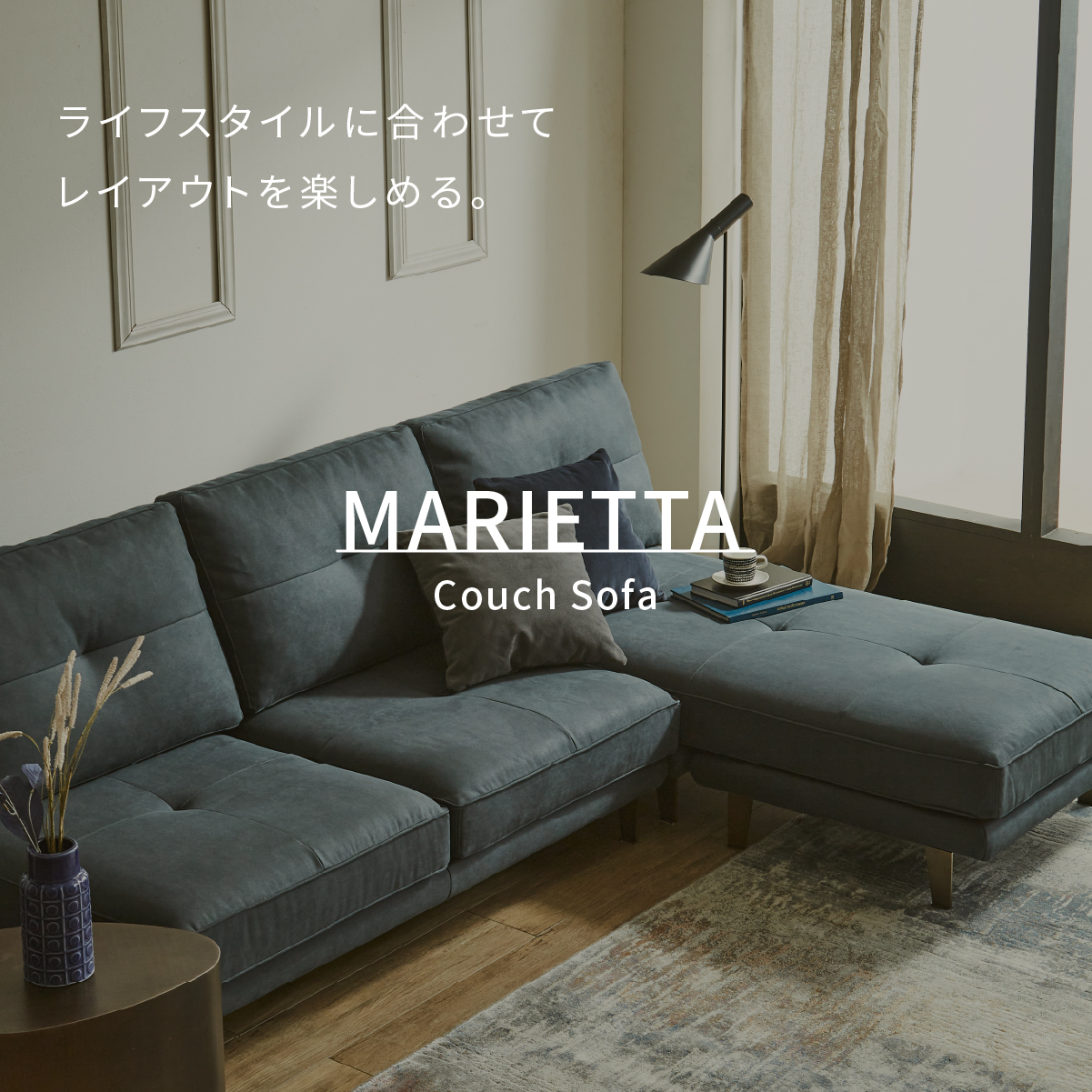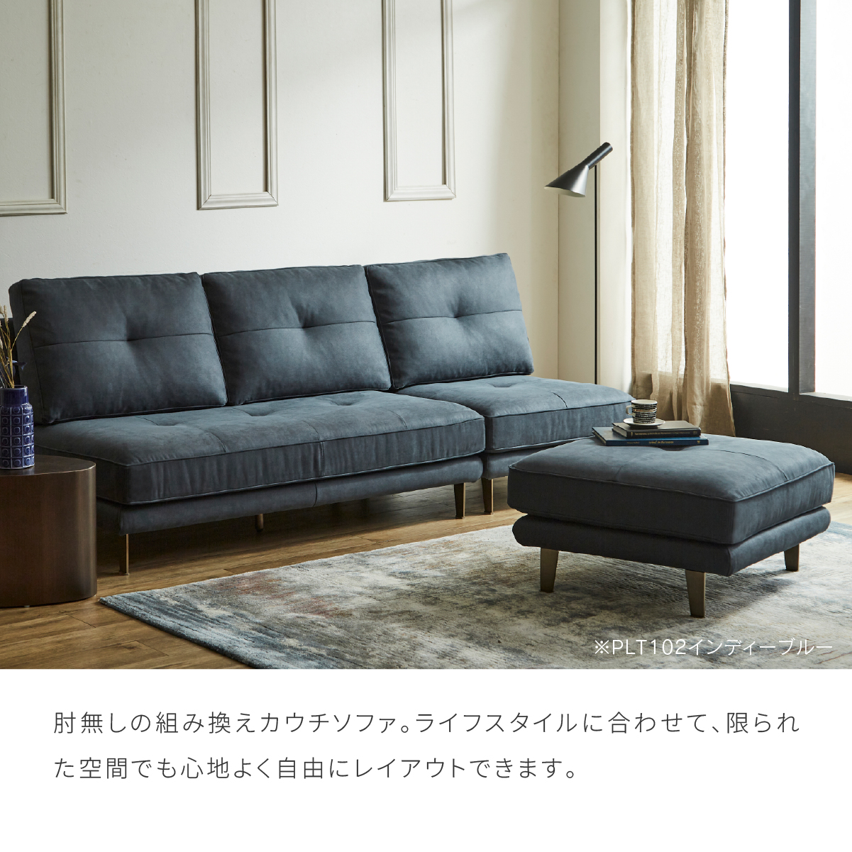 マリエッタ カウチソファ 幅219cm PLT101 ブルースター(プライムレザーテックス) 商品コード 453592