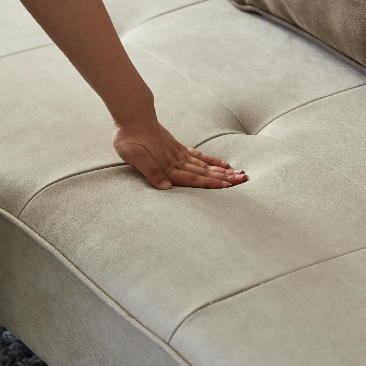 張地はレザーテックス生地を採用。心地良い肌触りと上品な質感が特徴的で年中快適にお使いいただけます。