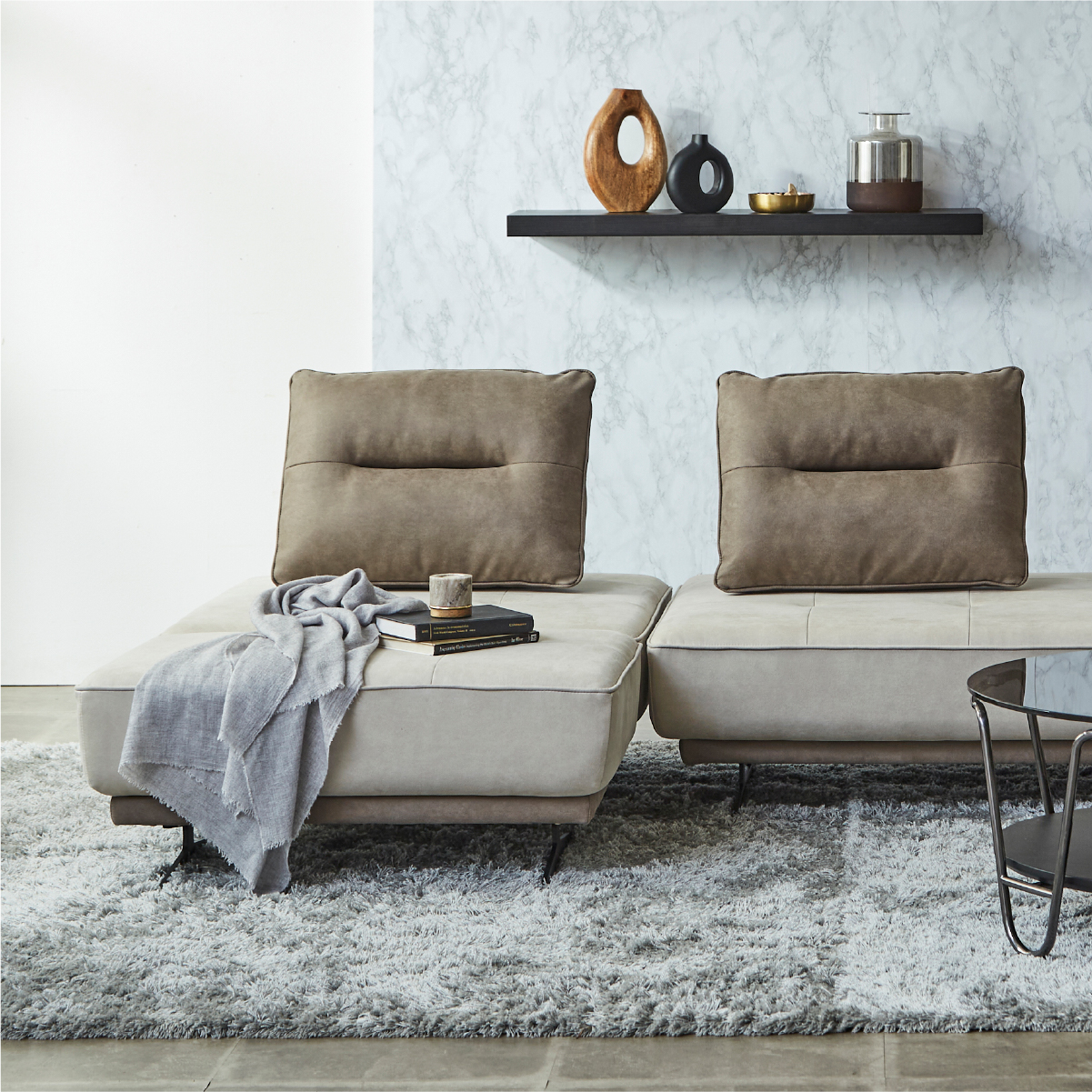 エレガントなフォルムと多様なライフスタイルにマッチするアイランドソファ「アベンタ」。