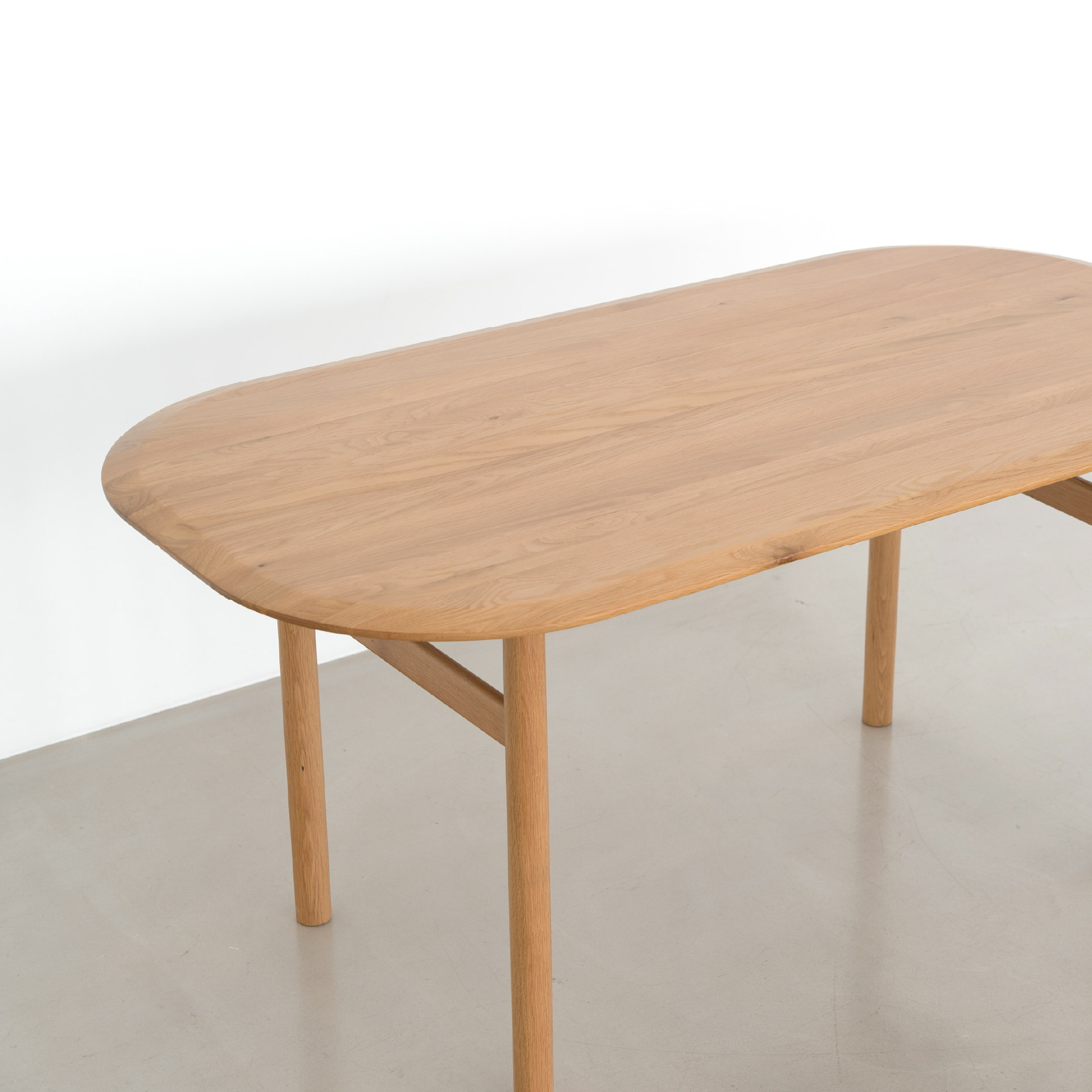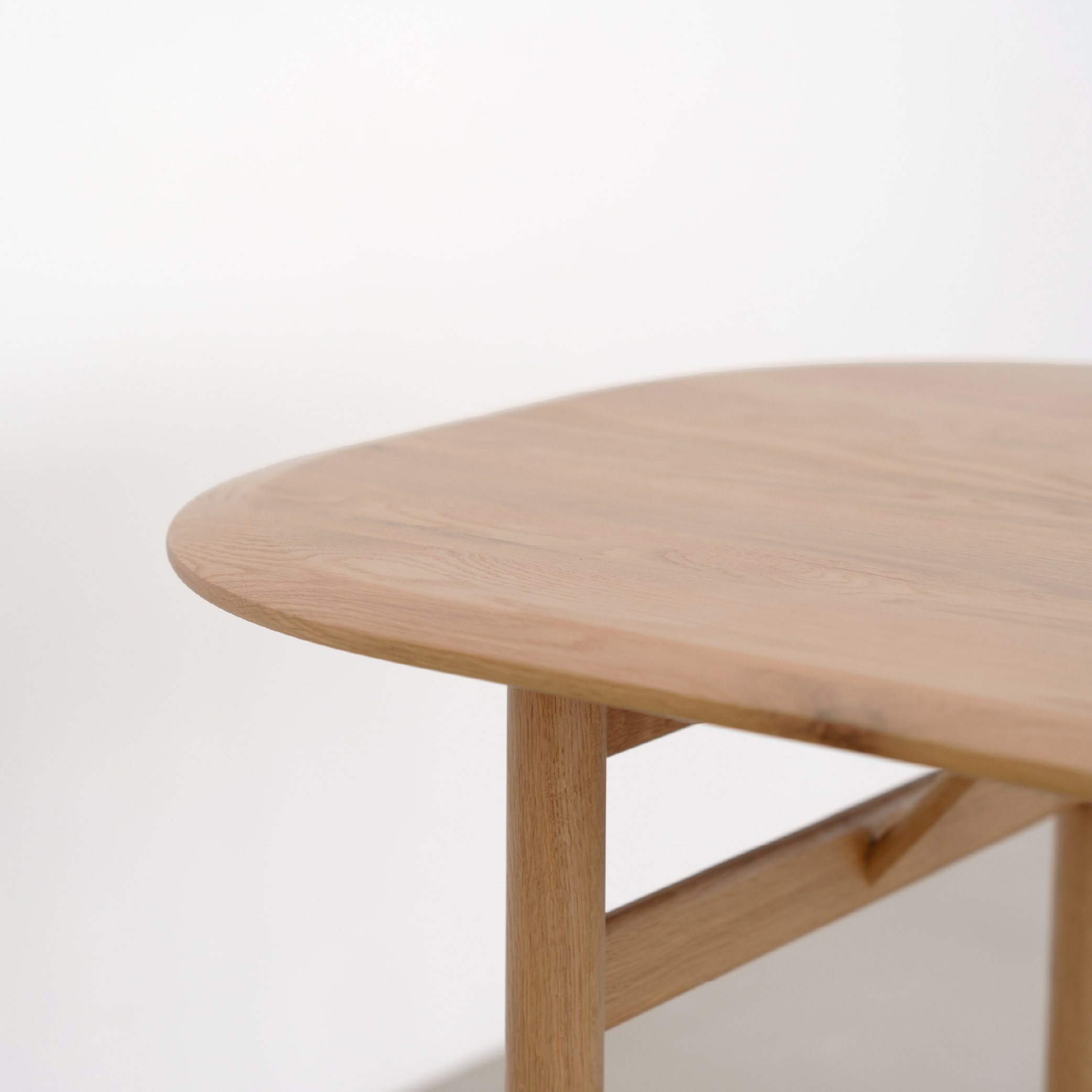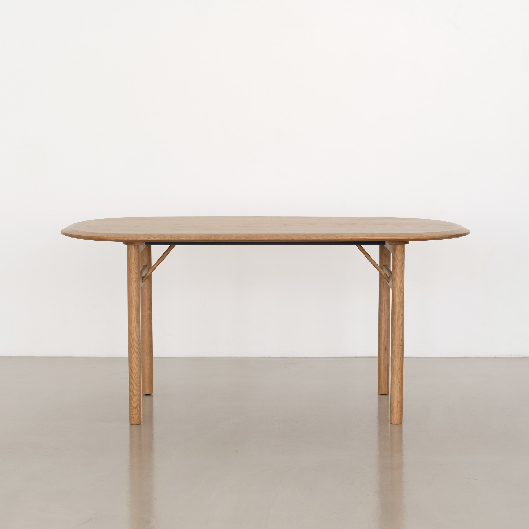 丸みを帯びた優しいデザインが魅力の無垢材ダイニングテーブル。
