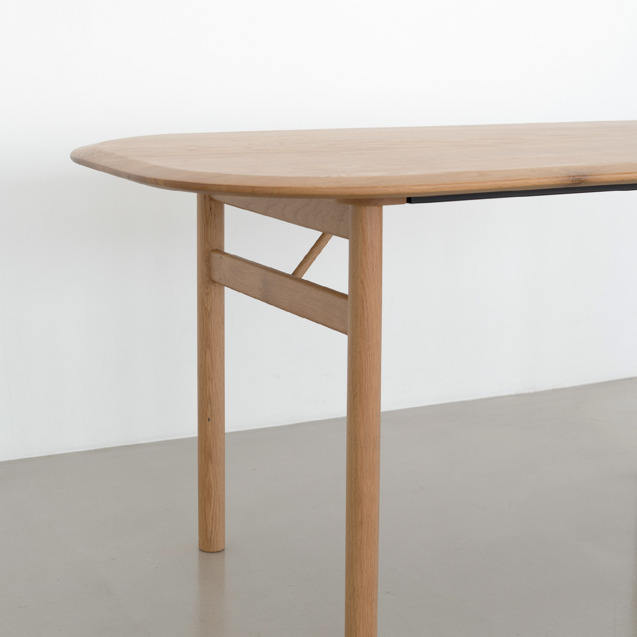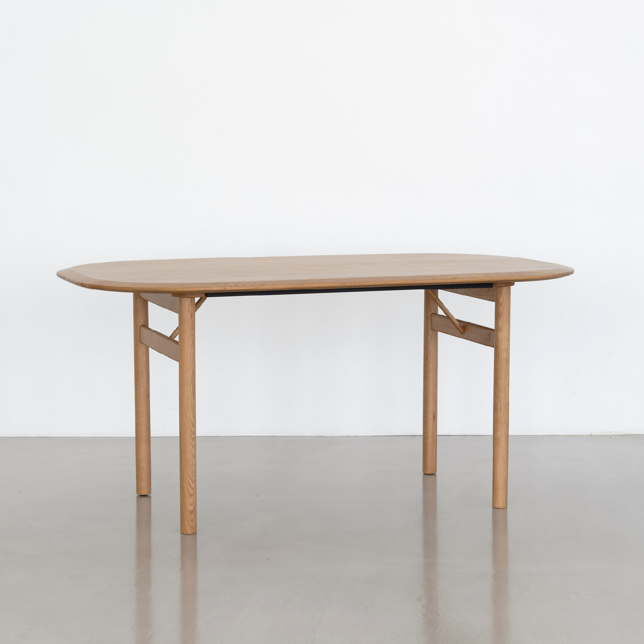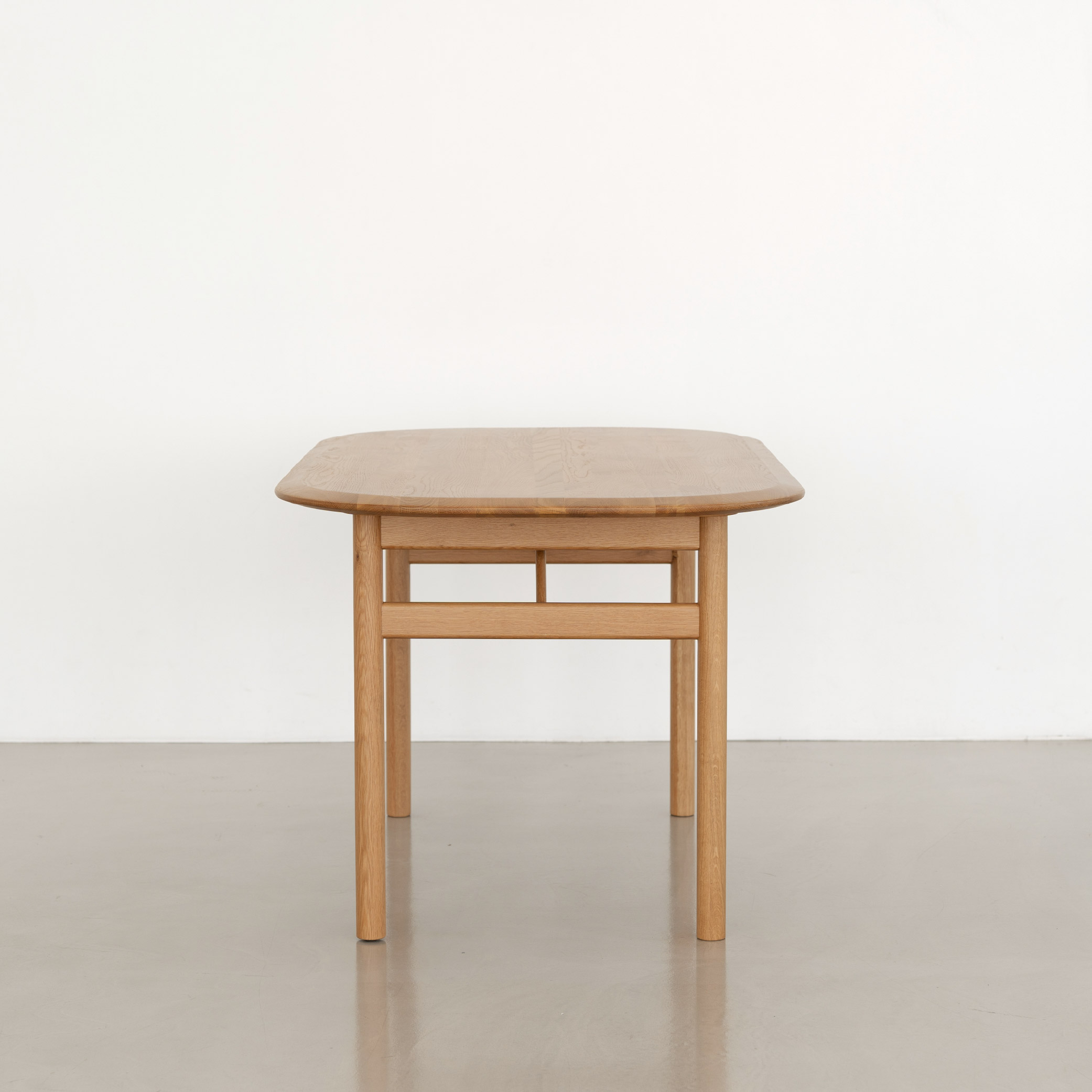 丸みを帯びた優しいデザインが魅力の無垢材ダイニングテーブル。
