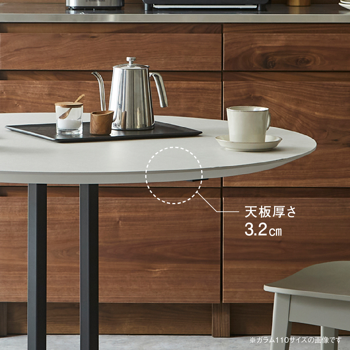 天板は熱や汚れ、キズに強く、指紋の付きにくいメラミンを採用。 お部屋の雰囲気に合わせて3種類の柄からお選びいただけます。