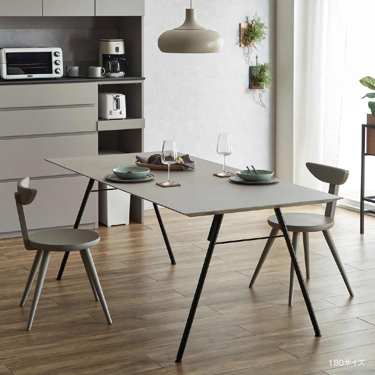 ガラム ダイニングテーブル 幅150cm グレージュレザー / スチール脚A 商品コード 418540