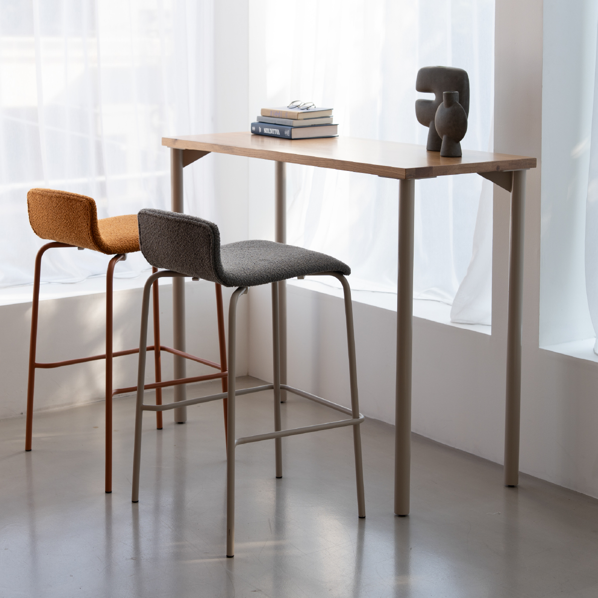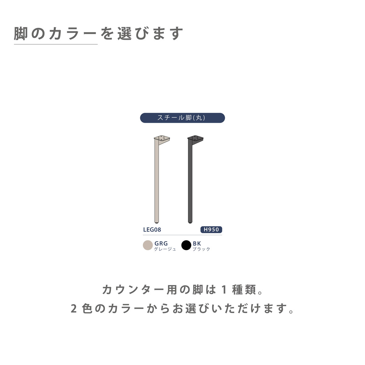 商品情報 天板と脚が選べるセミオーダーのダイニングテーブル。 天板は8サイズ、脚は6つのバリエーションから自分好みのテーブルをセレクトできます。 [LEG 08] シンプルなスチール製の丸脚。 カウンターテーブル用としてお使いいただけます。 ブラックとグレージュの2カラー展開で、さまざまなインテリアに馴染むデザインです。