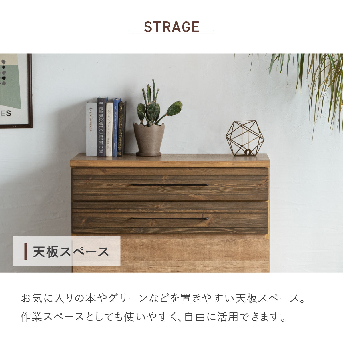 商品情報 引出前板上2段節ありパイン無垢材(オイル塗装、うずくり仕上げ)/他部分プリント化粧仕上げ 前板無垢部以外:プリント化粧板/扉:強化紙真空張りMDF 引出箱組、桐材カキ板13mm、底板補強サン入り。レール付き(上段2段白レール、他フルスライドレール)