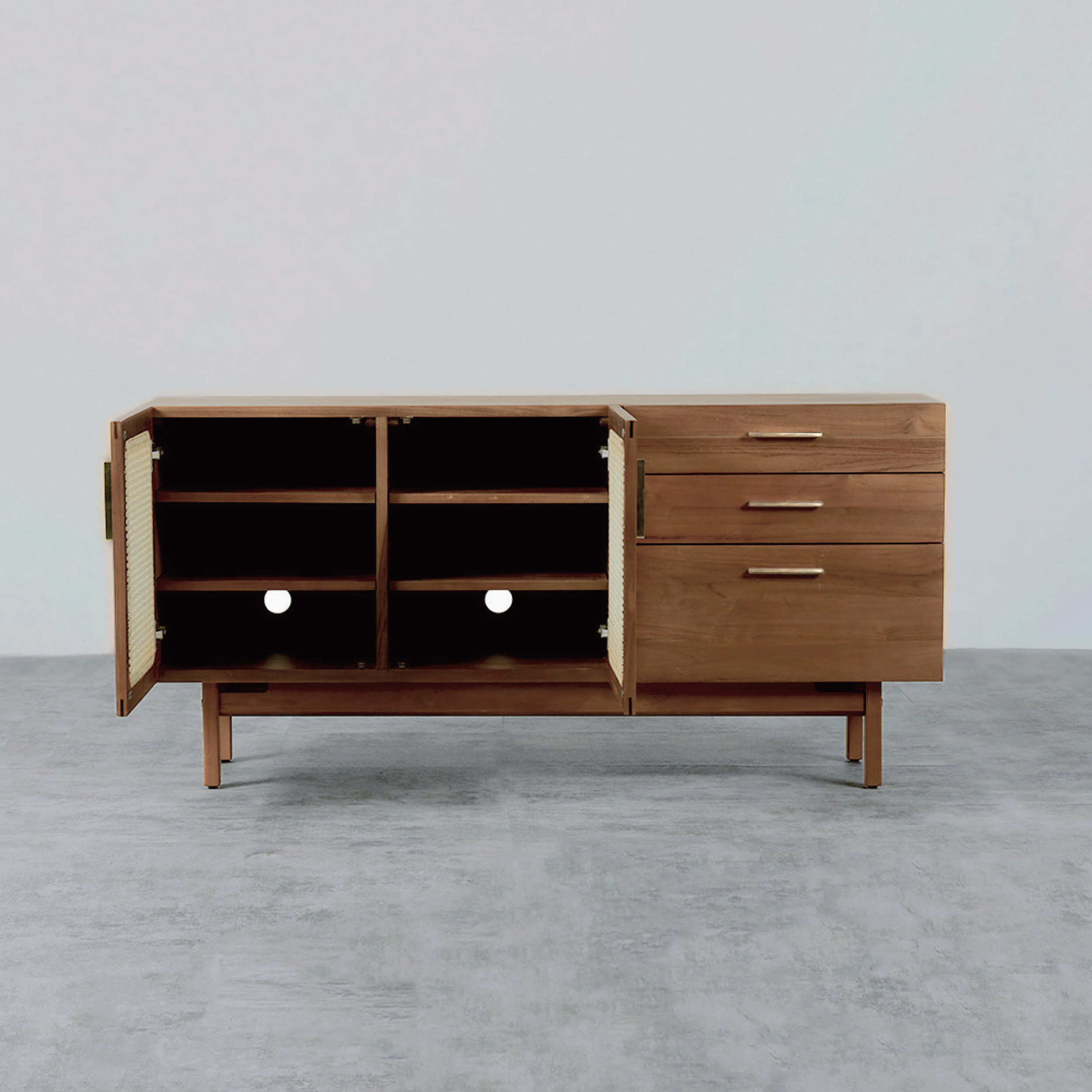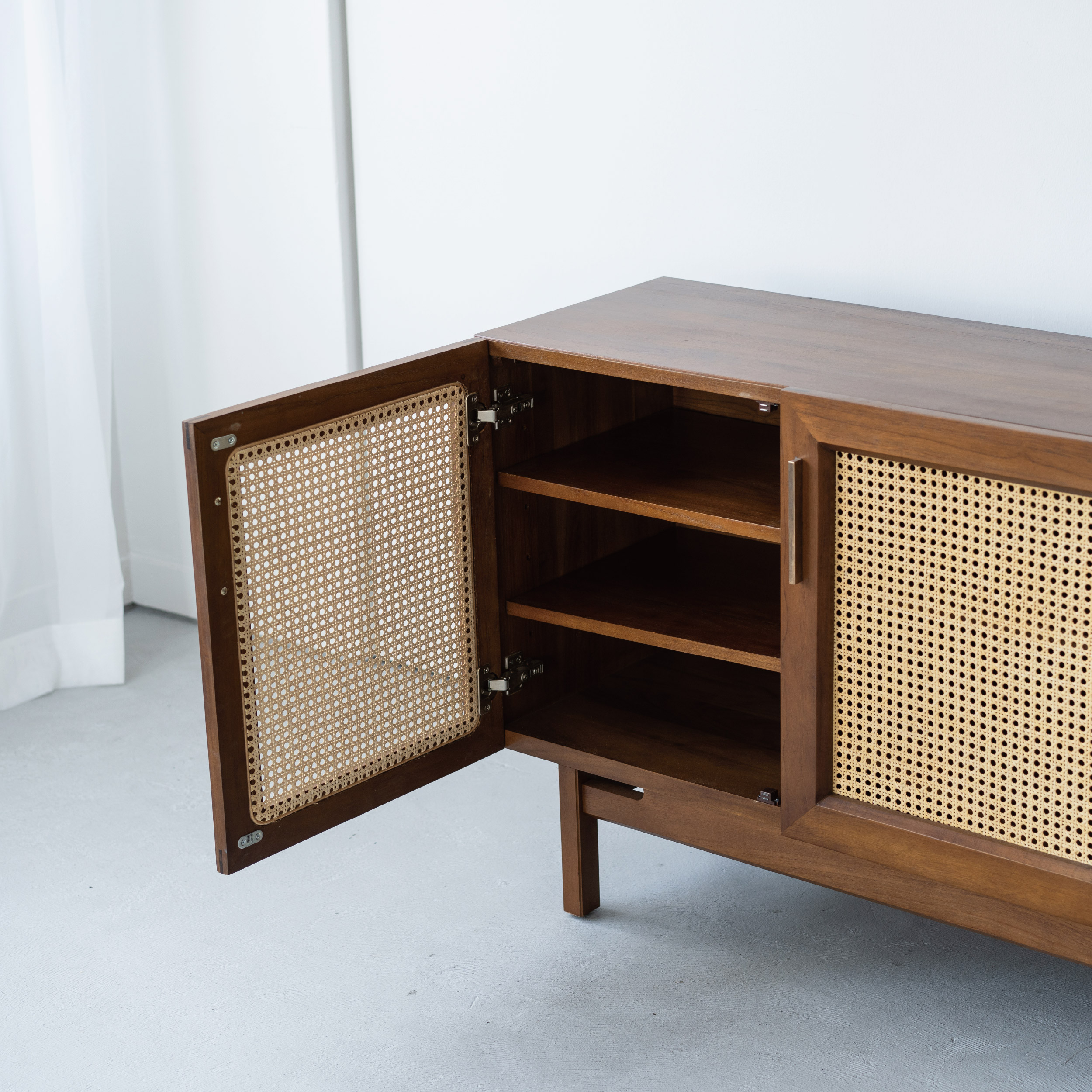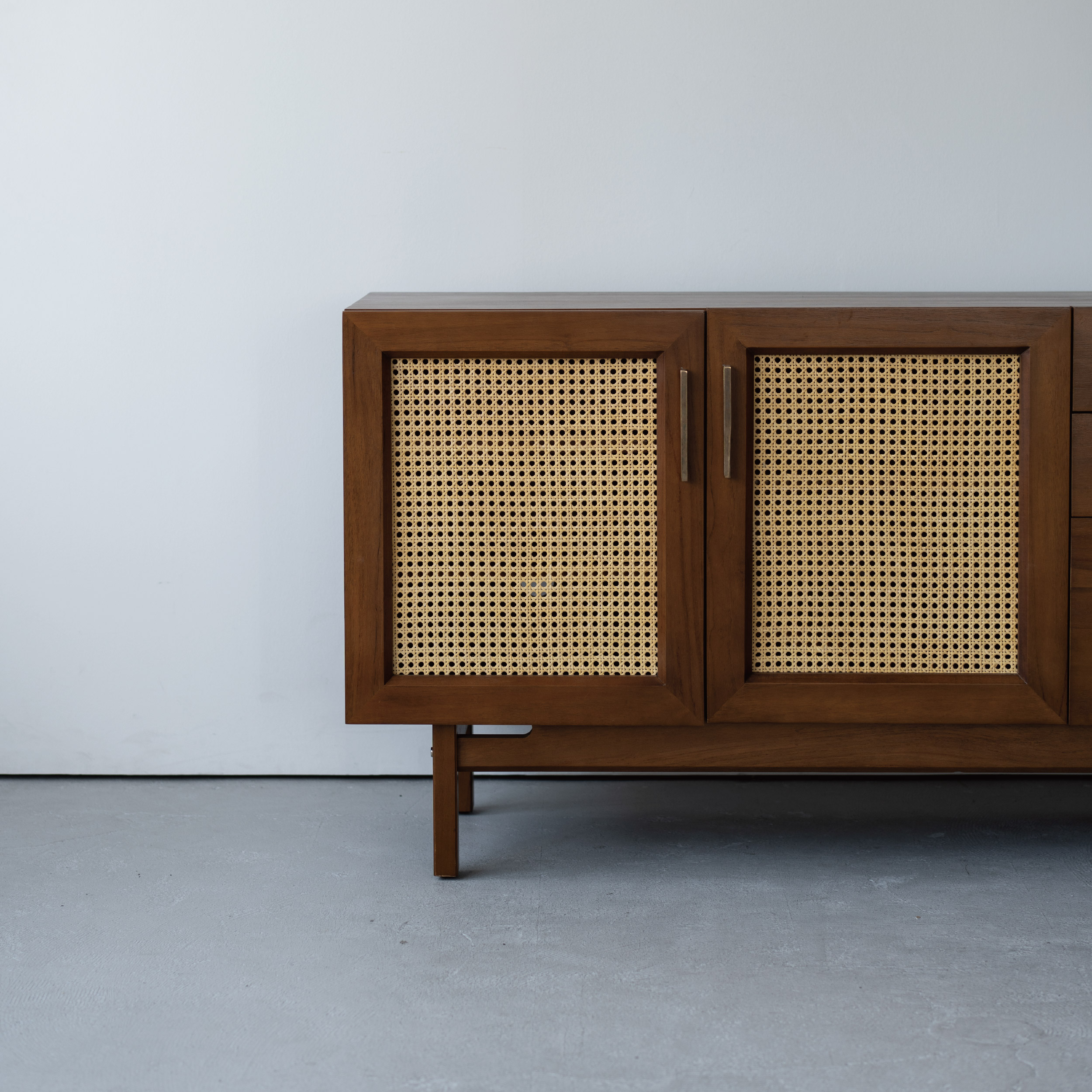 「ラタン扉が生む軽やかさ」 重厚さの中に抜け感を加えるデザイン。