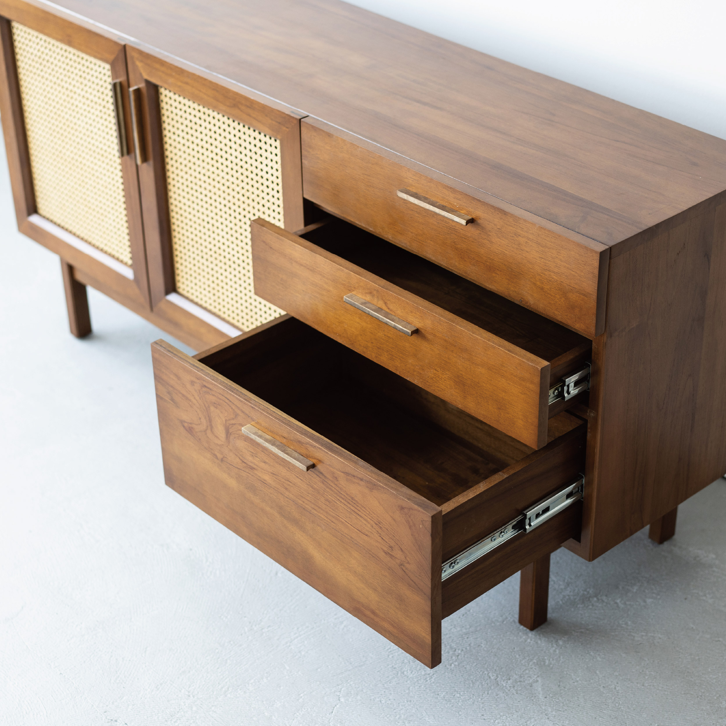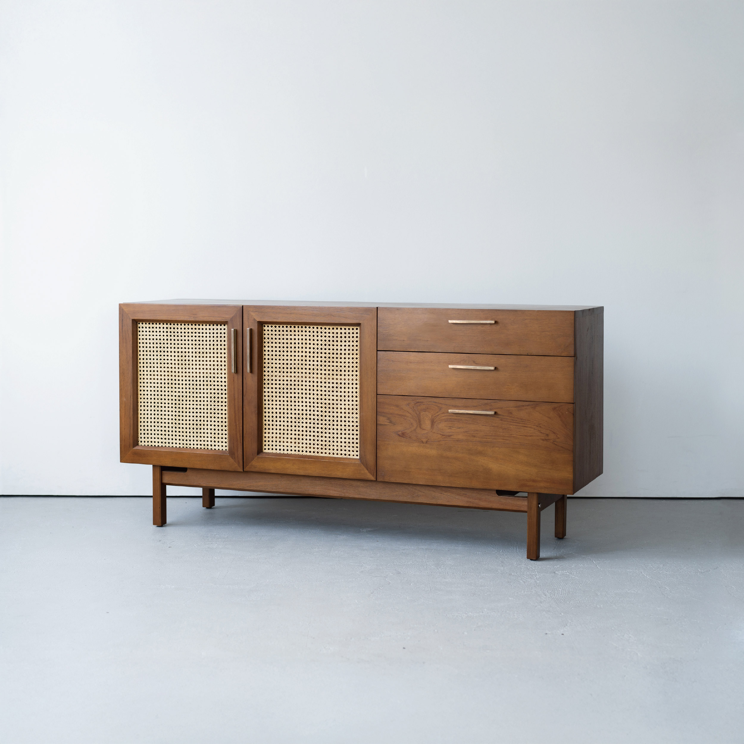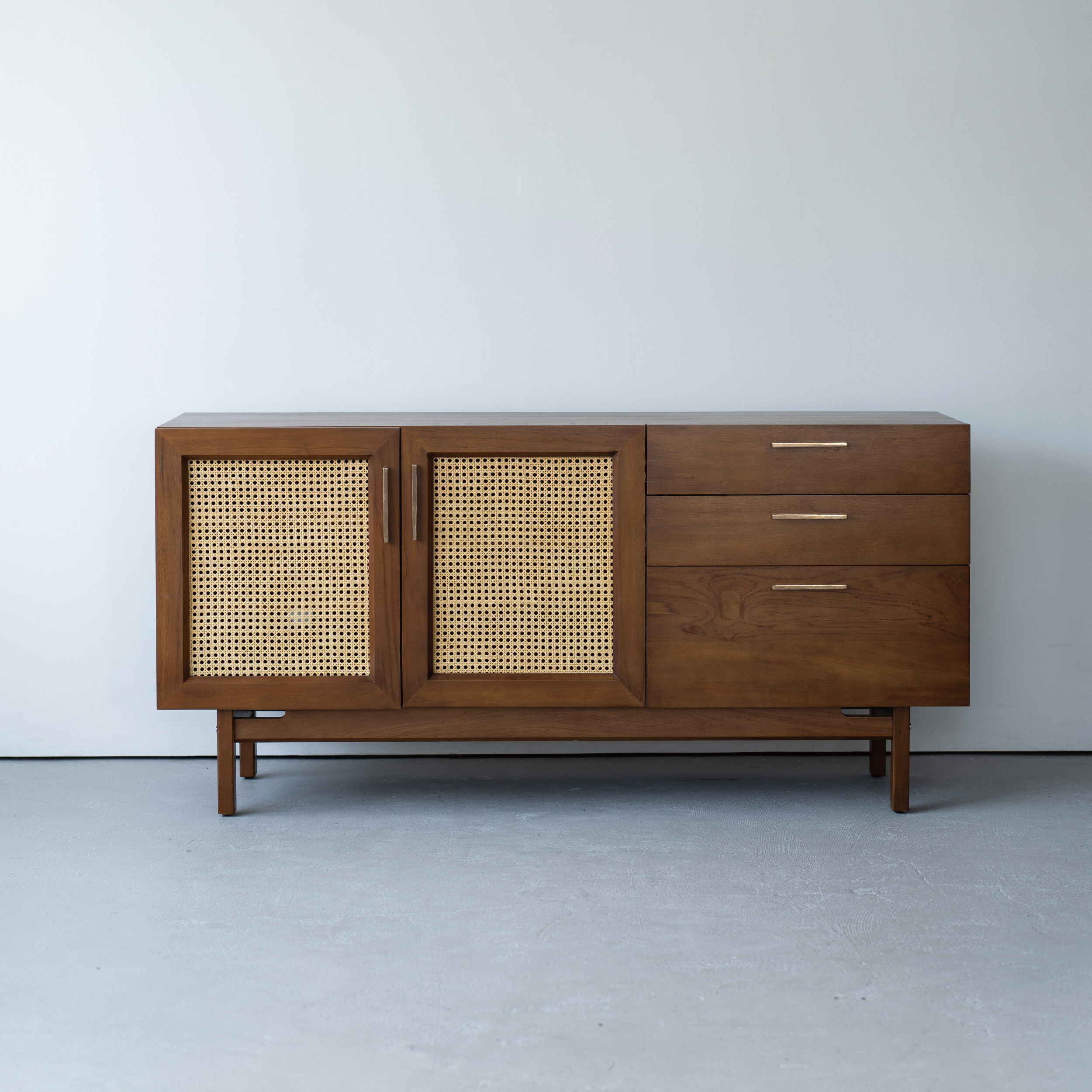 「ラタン扉が生む軽やかさ」 重厚さの中に抜け感を加えるデザイン。