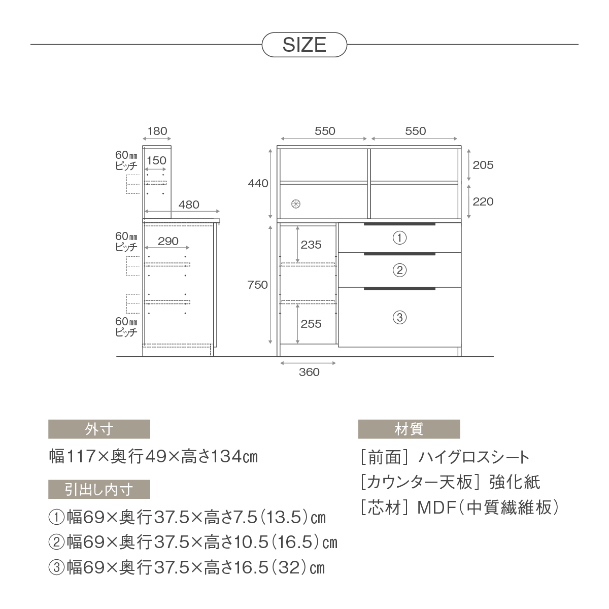 カルム 幅120cm ミドルカウンター 商品コード 474946