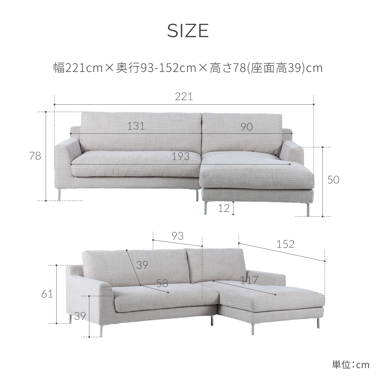 左カウチ / F53シルキーグレージュ