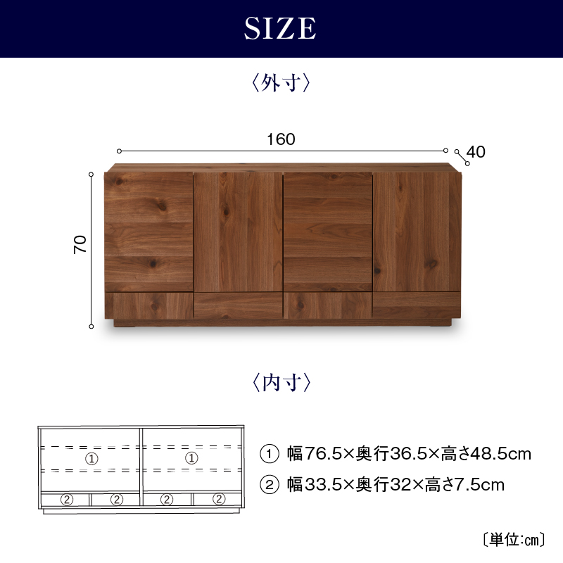 商品サイズ 幅160.0 × 奥行40.0 × 高さ70.0cm