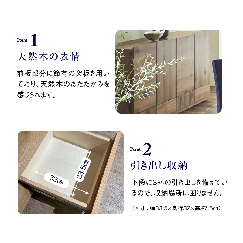 木材ならではの質感を活かすために、節や節割れが入ったものもございます。木材の特性としてご理解いただいた上でご購入ください。