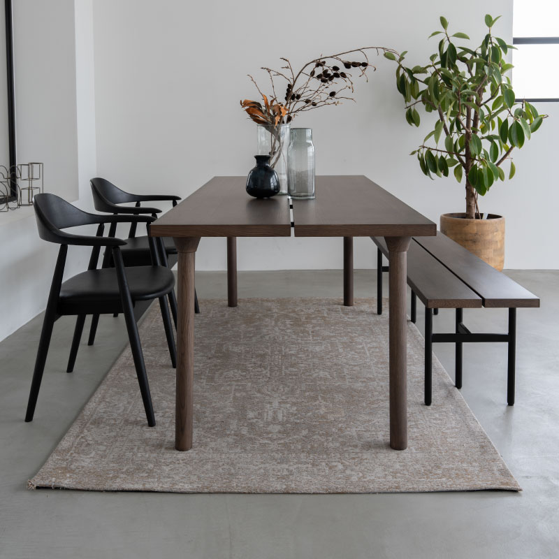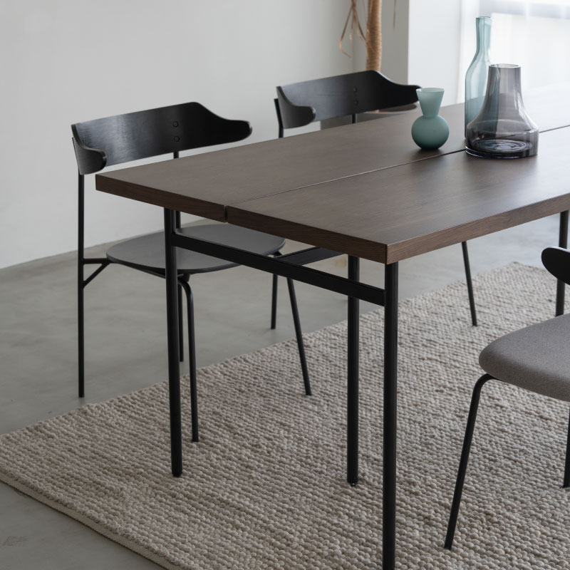 商品情報 天板のスリットが特徴的なベーシックモダンなダイニングテーブル。 脚のデザインは木脚とスチール脚からセレクトできるので、お部屋のシーンに合わせた雰囲気に仕上がります。 カラーは自然で明るい印象のOAKと、落ち着いたトーンのGBRの2色展開で、様々なチェアや空間と合わせやすい色合いを選定しています。