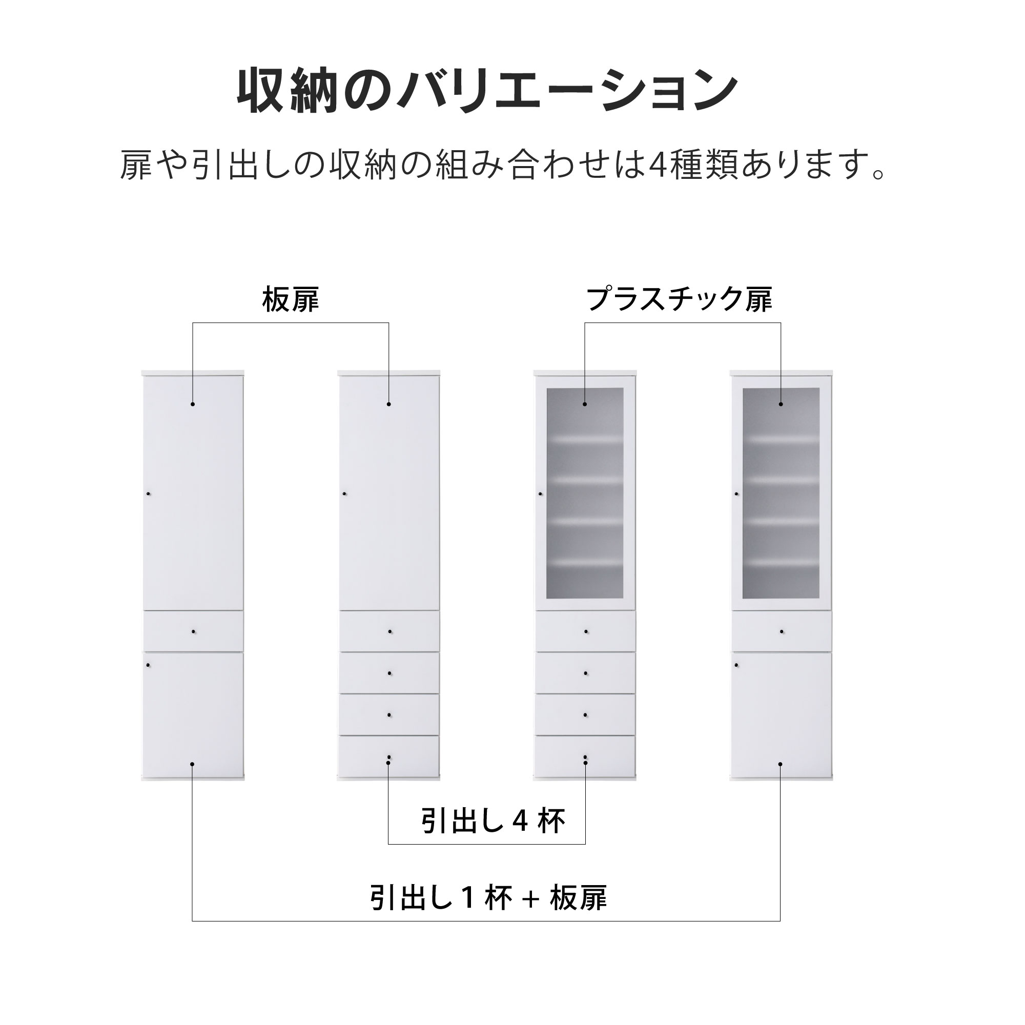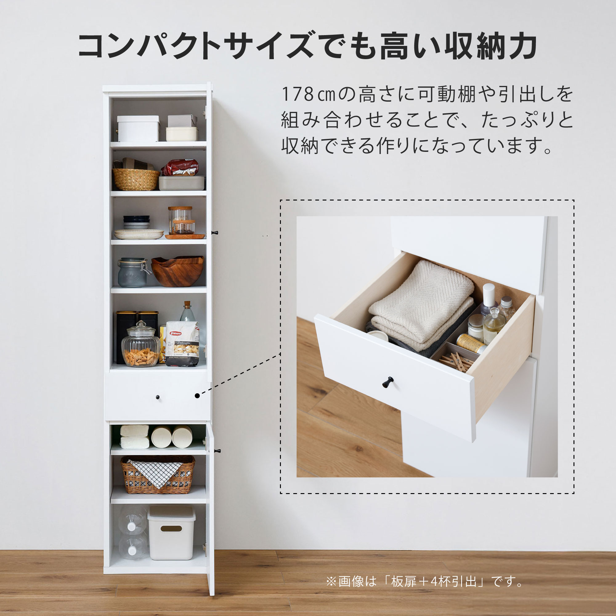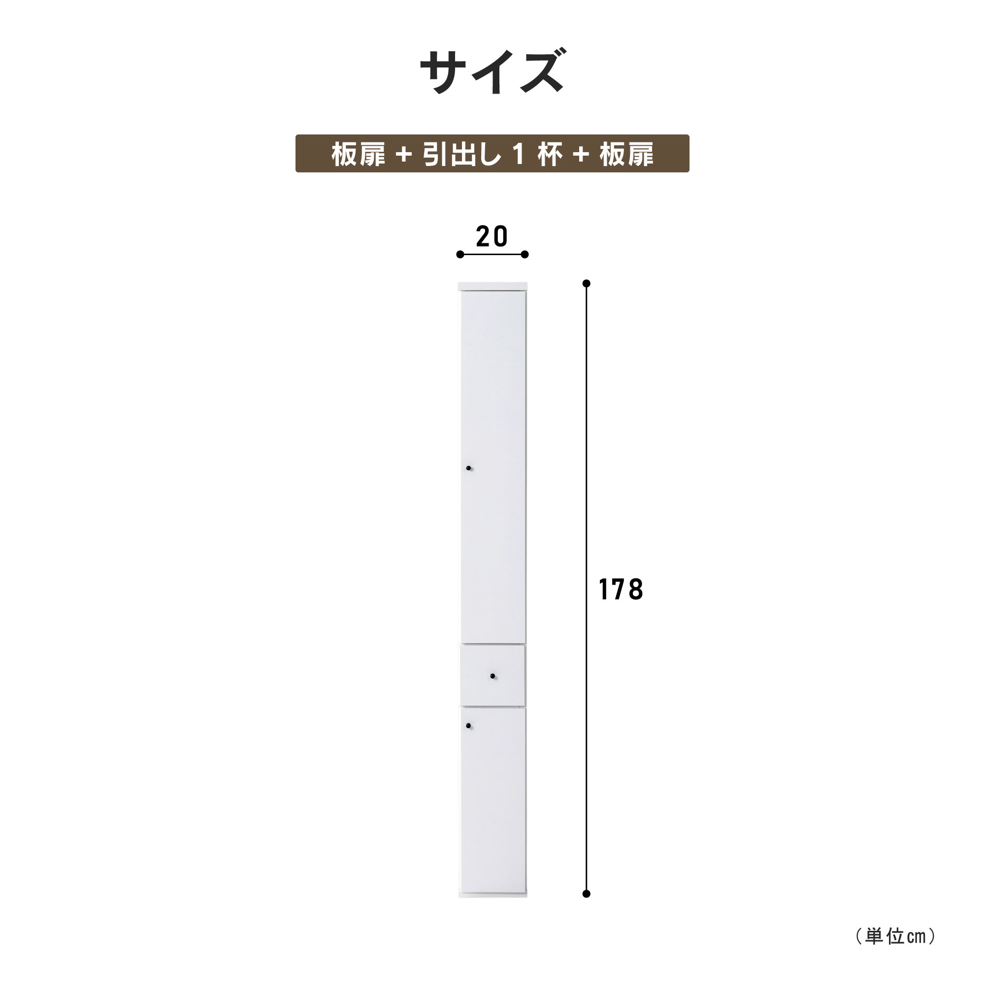 商品情報 キッチンや洗面所、リビングなどの狭い場所を有効利用できます。20㎝から45c㎝の間で2.5c㎝単位でお好みの幅をお選びいただけます。扉は向かって右開きです。