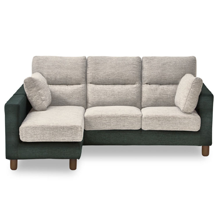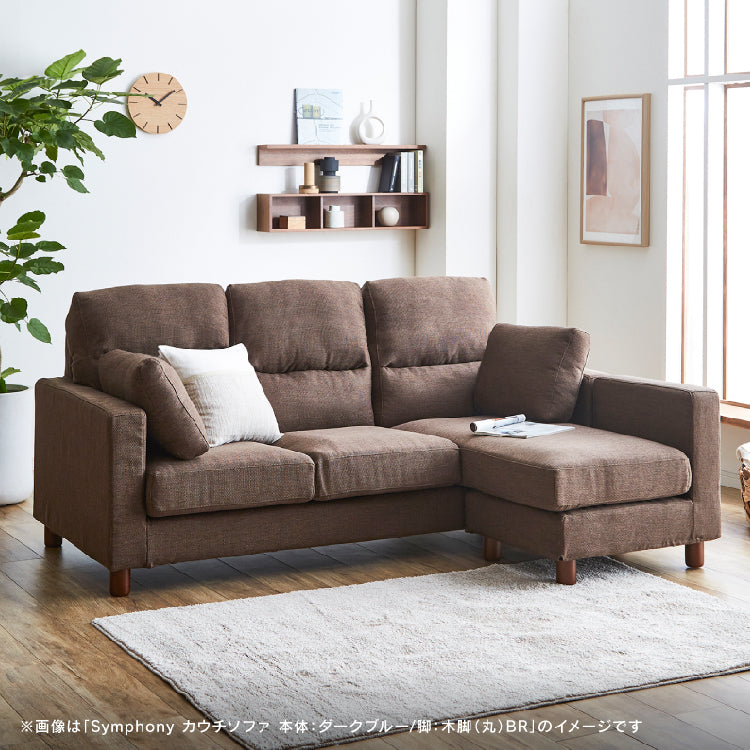 シンフォニー7 カウチソファ 幅198㎝ ホワイト×ブルー / 木脚(丸):ブラウン 商品コード 377785