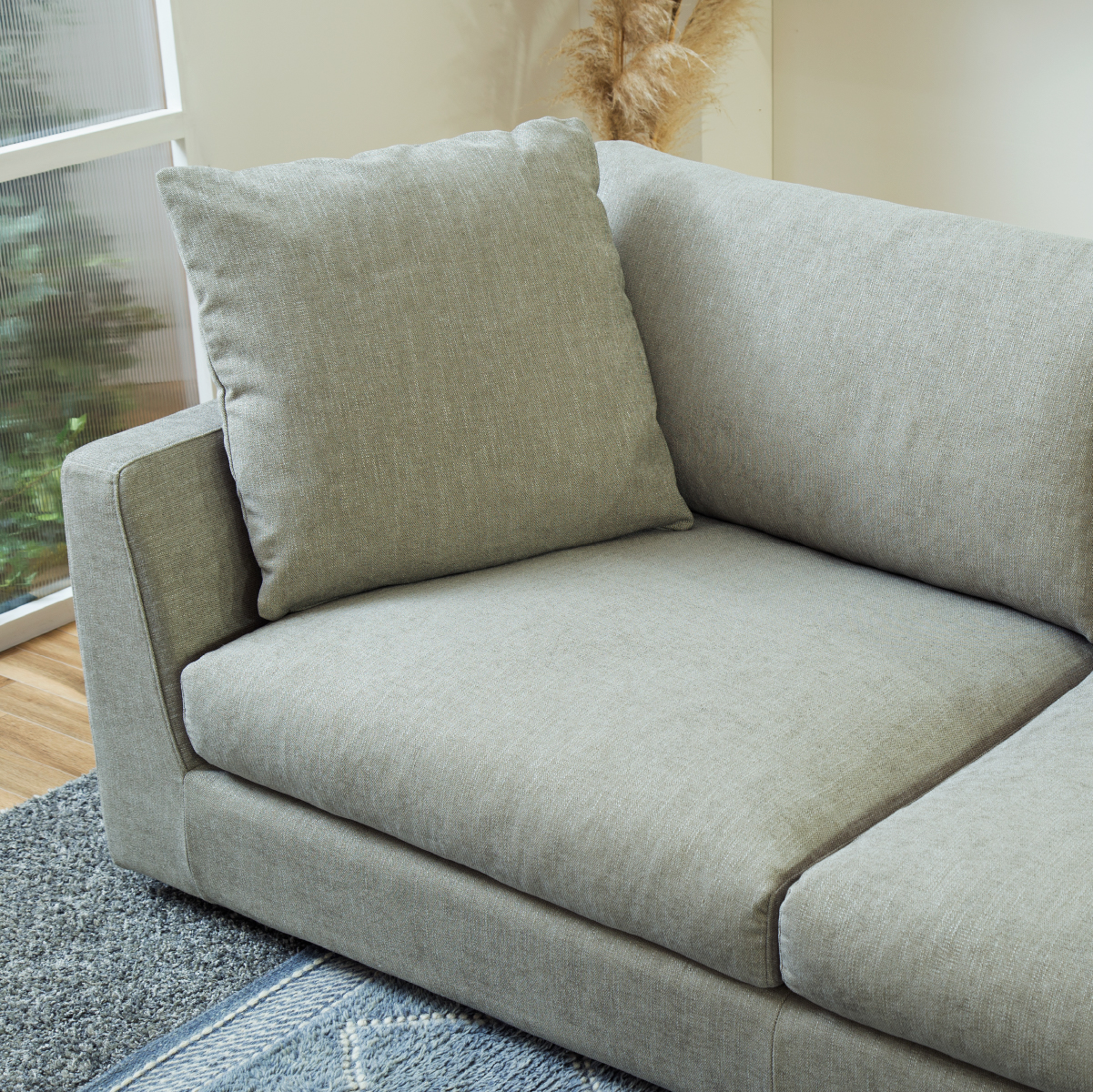 背と肘のクッションの表面には柔らかいフェザーを使用し、優しいタッチに仕上げました。