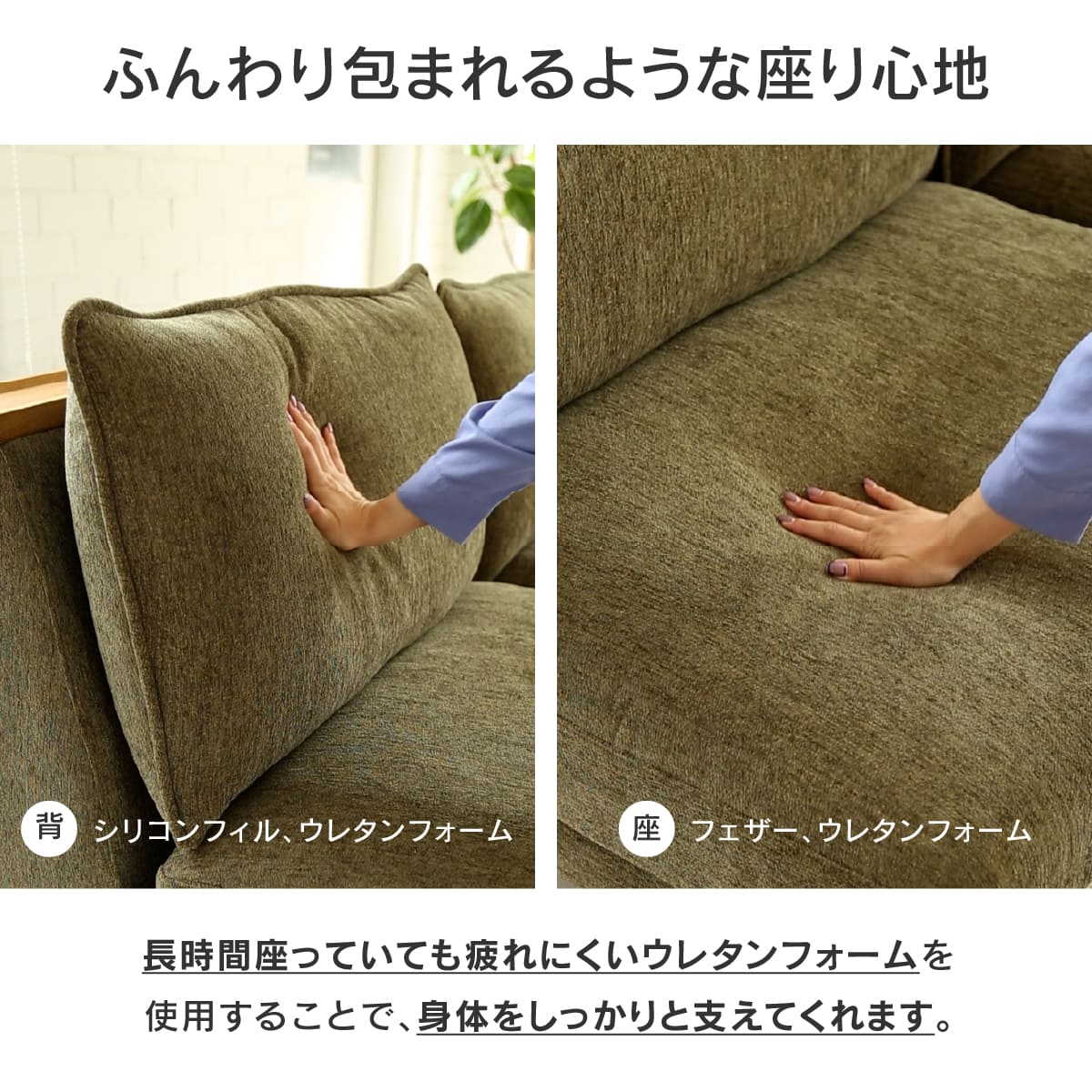 商品情報 座面フェザー使用。背もたれ宮付き。お掃除ロボット対応
