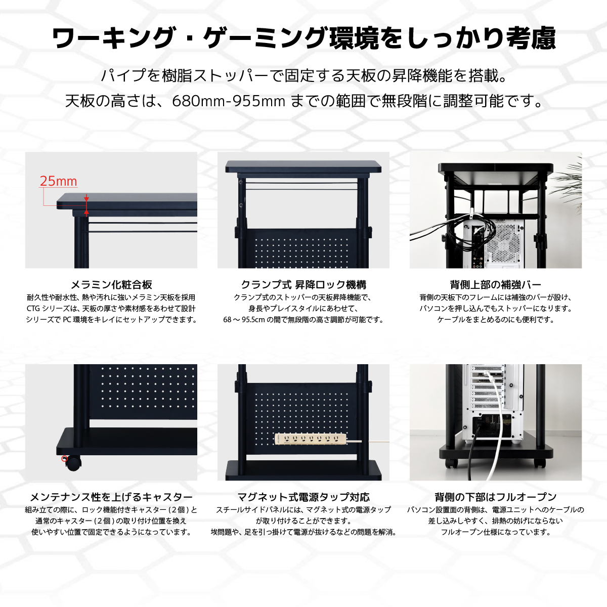 Contieaks CTG- 昇降式 ゲーミングワゴン ブラック 商品コード 431830