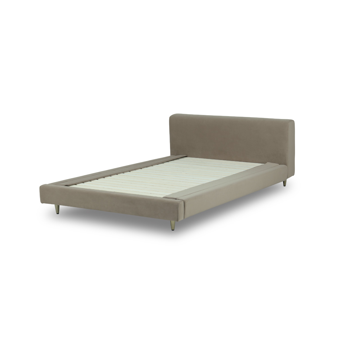 やわらかなベルベット調生地を纏った、 <br>上品なベッドフレーム。